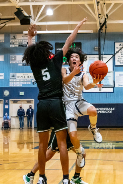 The Meadowdale High School boys basketball team played its first home game of the season Friday night, hosting the 4A Timberwolves from Jackson High School. Finding themselves down 14-6 after one quarter, the Mavs scrapped their way back into the game, pulling to within three at the half, 23-26, due in large part to junior guard Jeremy Kim and his 14 first-half points.