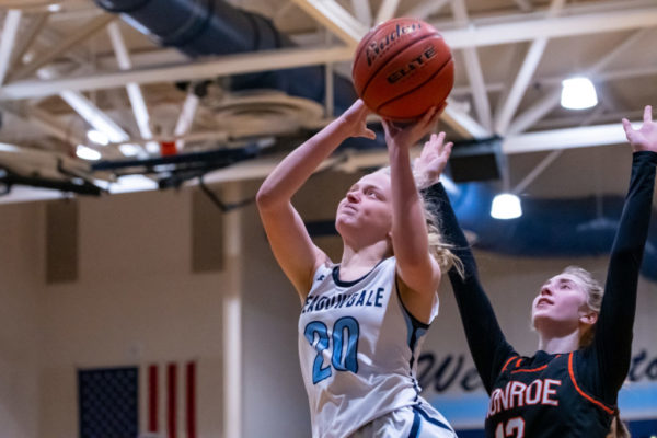 Monroe individual scoring: Adria Lincoln 17, Kasey Lewis 11, Brooke Boroughs 4, Reese Bingham 3, Cassidy Scott 2, Katelyn Paxton 2, Eden Moore 2