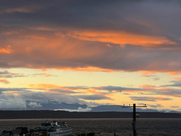 “The folks on this ferry had a lovely view of the snow-capped Olympics, interesting clouds and lovely sunset colors,” notes photographer DC Miller, “compared to the all-consuming gloom and rain earlier in the day that kept Whidbey Island hidden.”