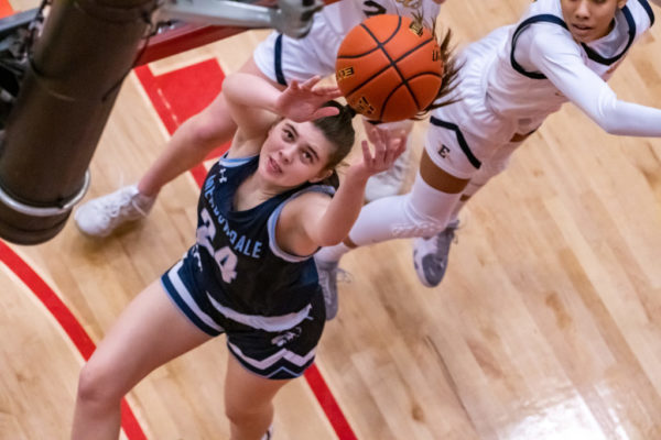 The Mavs struggled on the offensive end Saturday; the 31 points scored by Meadowdale was their lowest output for a game this season. The team made only eights shots from the field — just two in the first half, a three-pointer by Jordan Leith early in the first quarter and another three by Gia Powell late in the half.