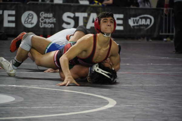 Also advancing to day two in consolation bracket were George Quintens at 138 lbs and Evan Gibbs at 220 for the Warriors, Nathaniel Wilder at 145 and Gyumin Beck at 220 for the Lynnwood Royals, and Sam Trepernas (113) for the Mountlake Terrace Hawks.
