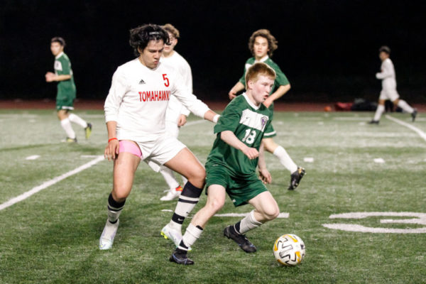 E-W’s Ruairi McGuigan (17) and Pilchuck’s Jose Govea Lopez (13).
