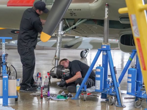 Testing the landing gear seals on a Hawker Hurricane in July 2019. Per the museum: “Because of its simplicity and adaptability, the Hurricane would serve in every major theater of air warfare in World War II.”