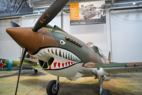 Curtiss P-40C Tomahawk. Its plaque reads: “The P-40 was the U.S. Army’s most capable fighter at the dawn of World War II.”