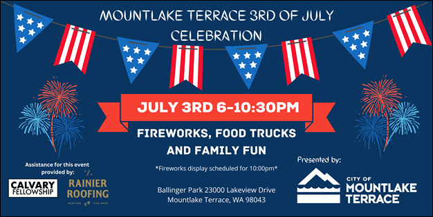 Launch into summer at the City of Mountlake Terrace’s 3rd of July Family Celebration with fireworks, food trucks and fun.