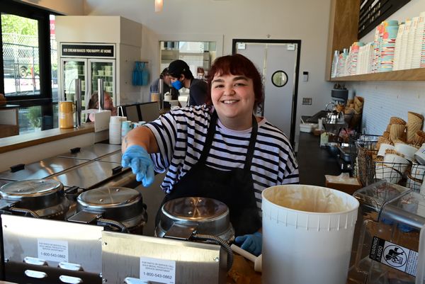 The aroma of baking waffle cones filled the street and drew crowds to the counter of the store, the first to officially open for business in the new Edmonds Main Street Commons complex.