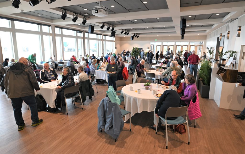 Since opening its doors in March 2021, the Edmonds Waterfront Center (EWC) has operated a “community café” model where seniors needing extra help get a subsidized meal and the public order off the menu and pay a market price. Everyone dines together in the banquet room, optimizing social connections and community engagement. The food has been provided by the EWC food service partner Feedme Hospitality & Restaurant Group (FHRG).