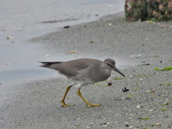 The Wandering Tattler is an uncommon shorebird due to a small global population, remote breeding grounds and a geographically expansive wintering range (Pacific Ocean islands). This shorebird breeds in the arctic and passes along the West Coast during migration. Of the six Edmonds sightings of this species since 1995, they have all been in the marina or on the marina’s two breakwaters, usually the south one where they can be difficult to see. Sighting records are from 1995, 1996, 2017, 2020 and August-September 2023.