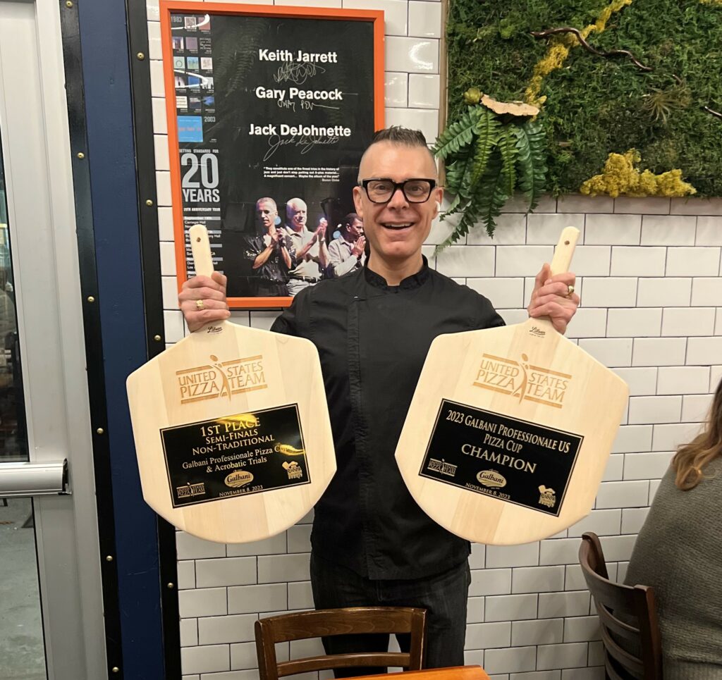 The good news is that these award-winning items will be part of his brunch menu that he hopes to debut in January 2024. He plans to have Sourdough Brioche Cinnamon Rolls (which he’s been developing with world-famous cinnamon roll expert Jerilyn Brusseau, now nicknamed the “CinnaMom” because she developed Cinnabon’s secret recipe). Other items on the brunch menu will include a variety of sourdough bagels with an assortment of schmears; Shakshuka (gently poached eggs in a chunky tomato, onion and bell pepper sauce popular in North Africa and the Middle East); Butter Croissant French Toast and weekend specials. Perhaps there will be a breakfast pizza too. Stay tuned. Personally, I can’t wait to have brunch at his place in 2024.