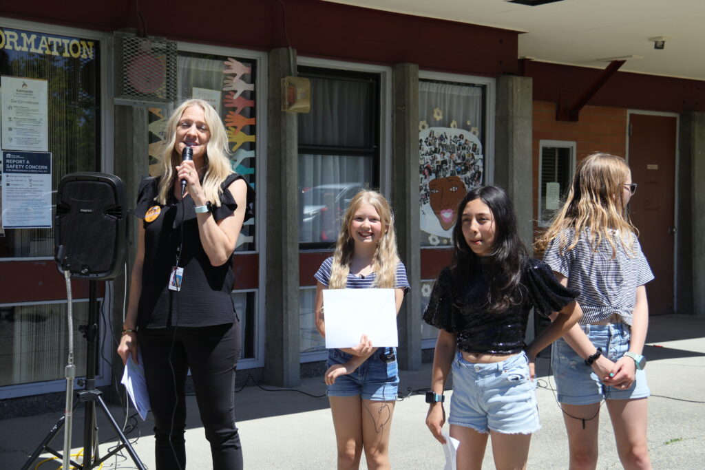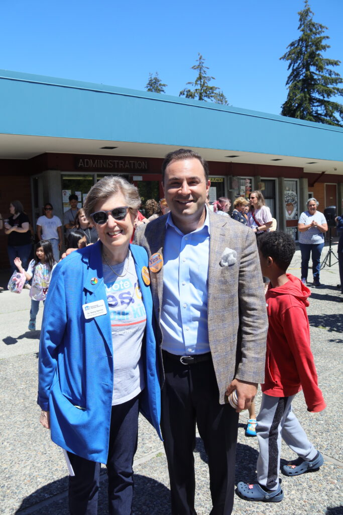 Edmonds School Board President Nancy Katims thanked Adel Sefrioui and Kory DeMun from Yes for ESD Kids and voters for passing the 2024 School Construction Bond and Replacement Technology/Capital Levy.