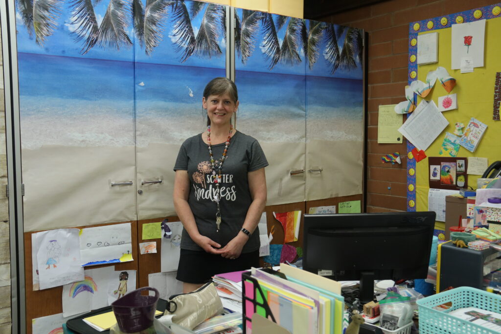 Grush recalled a flood on campus from many years ago. “There was a waterfall coming out of that wall,” she said, pointing to the hallway near the building’s workroom. “It was frozen and it had been leaking all weekend and it was going outside of the wall. There were pipes breaking, so I’m really excited to have a new school with up-to-date technology and maybe air conditioning.”