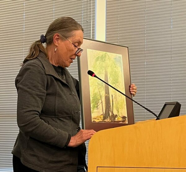 “I had the good fortune to grow up in proximity to 1,000-year-old and older redwood trees,” she said. “This is the only drawing from my childhood that I retained and valued enough to frame in my adulthood. My hope is that today’s 9-year-olds will have trees to inspire them, as the redwoods inspired me as a 9-year-old, and that today’s 9-year-olds may live to see future 9-year-olds enjoy similar inspiration.”