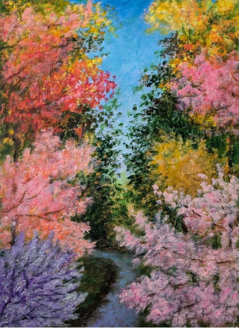 “I love sharing my inner life through my art.”Leanna’s work has won awards in numerous juried exhibits and have found homes in Paris, London, eastern Europe, and all over the States. “The clock is ticking, I’m in a hurry! All my most beautiful paintings are yet to come. They are there in my mind, ready to go . . .”