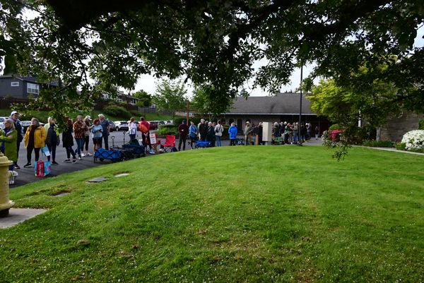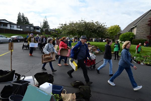 This year folks began lining up at 7:30 a.m. in the Edmonds United Methodist Church parking lot to get first dibs on the selection. By the time the gates opened at 9 a.m. the line of more than 160 eager shoppers wrapped around the church, many prepared with wagons, lists of most-wanted items and a game plan to be first to grab their top choices.