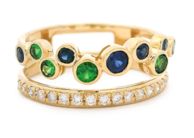 September babies, lovers of all things blue and jewelry enthusiasts alike are sure to be charmed by this gorgeous gem. Its deep, vibrant hues are reminiscent of a crisp autumn sky. Capture vivid color and add it to your fall rotation with a piece like this sapphire and green garnet ring.