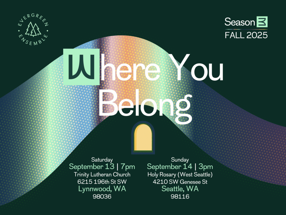 Evergreen Ensemble returns to Lynnwood to begin its third season with Where You Belong, exploring themes of community and belonging through a diverse and moving choral repertoire.