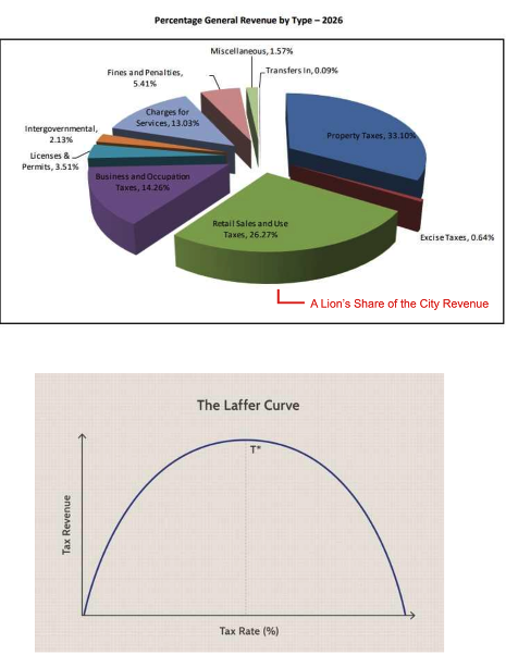 What isn’t up for debate is a basic rule of economics called the Laffer Effect. At a certain point, when government takes too much of a community’s disposable income through taxes, overall revenues don’t rise — they fall. Residents have less to spend, local commerce contracts, and the City’s own tax collections decline in tandem.