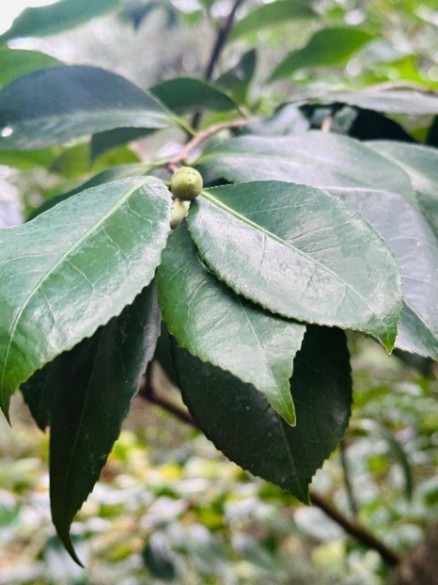 Sword ferns are green through the winter, and my camellias are starting to get buds for their show in a few months beautiful; dark waxy leaves of camellia and the fronds of the fern make perfect companions. Even these few items make lovely additions to your holiday table.