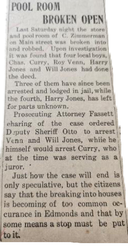 In Edmonds, the long-used wooden jail continued to be the “holding place” for local offenders until 1922.