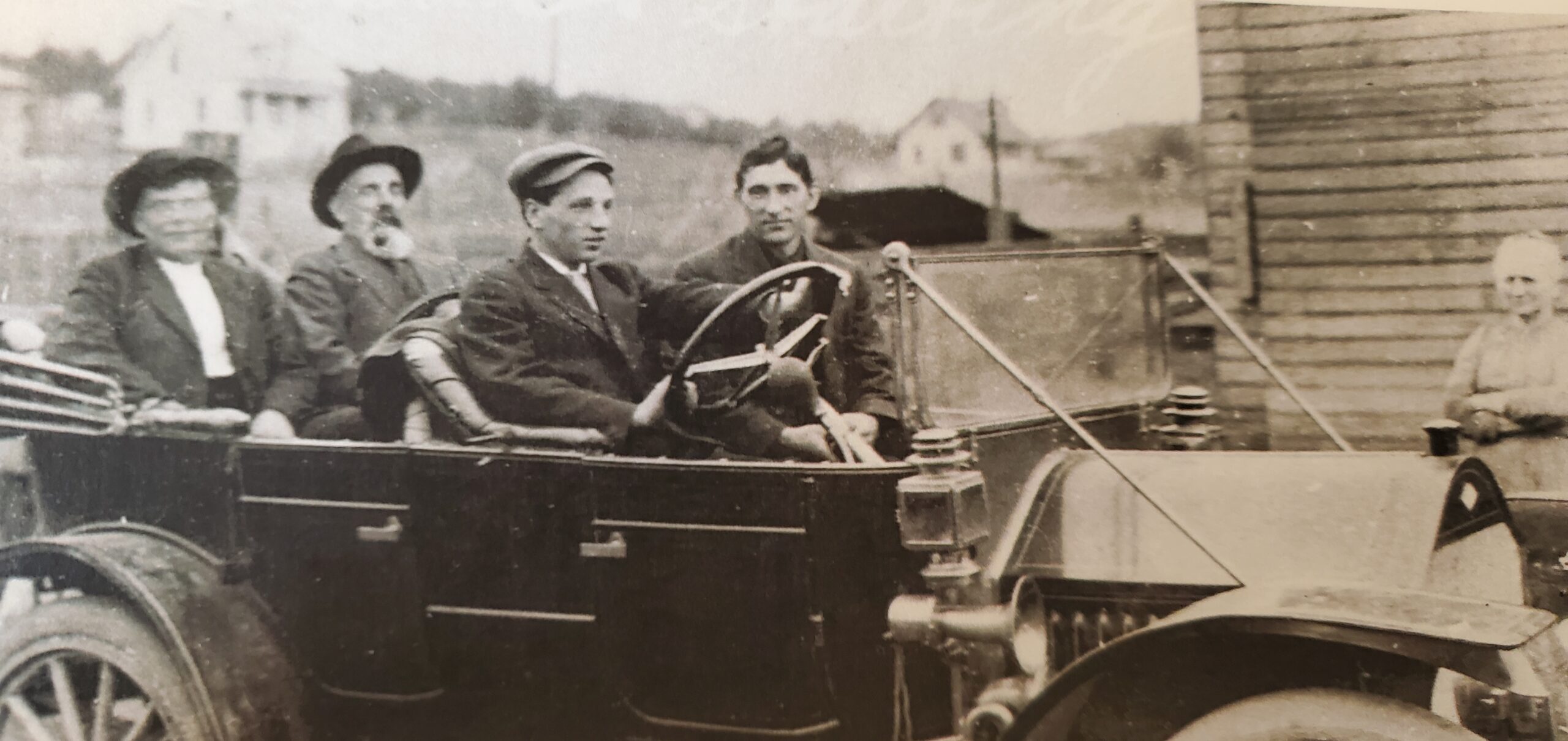 In 1910 the first cars appeared in Edmonds, driven by wealthy early-adopters from Seattle. A.M. Yost — seated in the back seat in the photo below — was the first Edmonds resident to own a car in 1911.