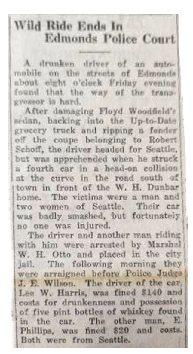 I find that the Edmonds Police Blotter found weekly in MyEdmondsNews is not nearly as entertaining as these newsworthy reports in Edmonds’ illustrious past. Although I’m sure that the Blotter stories of today could rival or at least equal those in the past. Thanks Bryon for this informative research