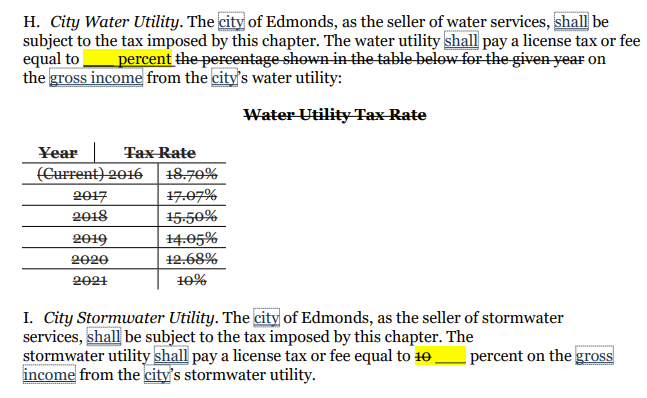 Should the City Attorney be allowed to fill in blank tax rate fields after a City Council vote based on the attorney’s interpretation of what the Council’s Main Motion meant? This Main Motion only mentioned three of the four utility tax rates under consideration. The Main Motion referred to 10% increases, not 100% increases. The Main Motion only addressed three of the four utility tax rates the Council was supposed to define.