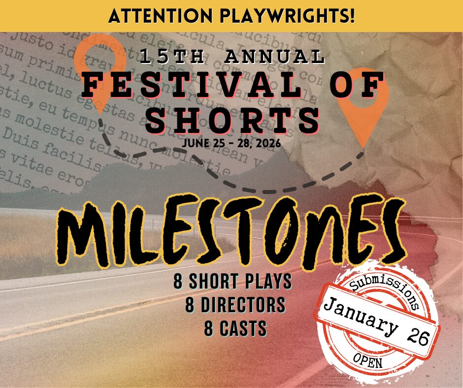 The 2026 festival theme is “MILESTONES: markers in time of significant achievements or events.” Playwrights are encouraged to submit both comedic and dramatic stories with uplifting endings.