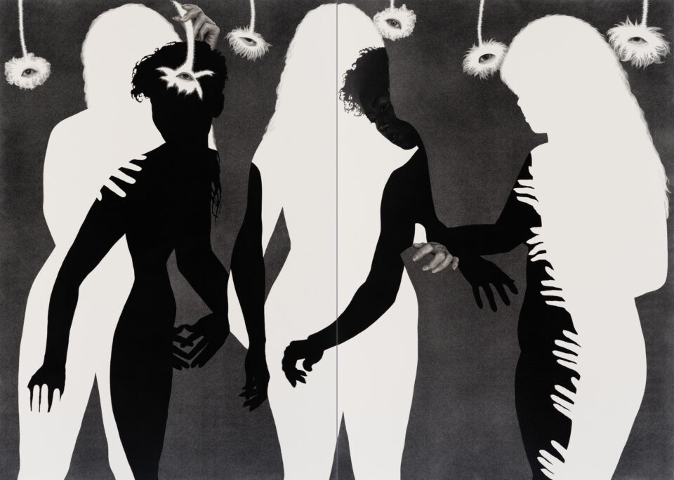 Yun Wall has long explored the personal narratives of people born to Asian women and U.S. service members during periods of military occupation in Asia. By examining cultural taboos that enforce secrecy and silence, she renders her figures alternately invisible and hypervisible, often in stark black-and-white compositions.